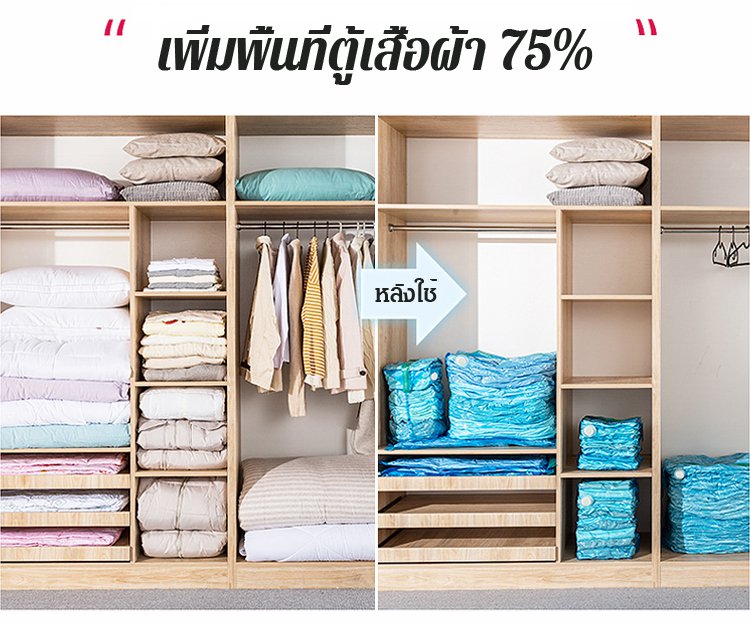 [ไล่อากาศออกใน 8 วินาที] ถุงสุญญากาศ ไม่ต้องใช้ที่สูบ ขนาดใหญ่พิเศษ
